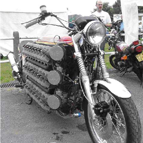 48 Zylinder-Bike, alles Zylinder von 250cc-3-Zylinder-Kawasaki, 1 Zylinder ( der 49.) ist zum Starten!!! Und das alles mit Straßenzulassung!!! (England!!!)